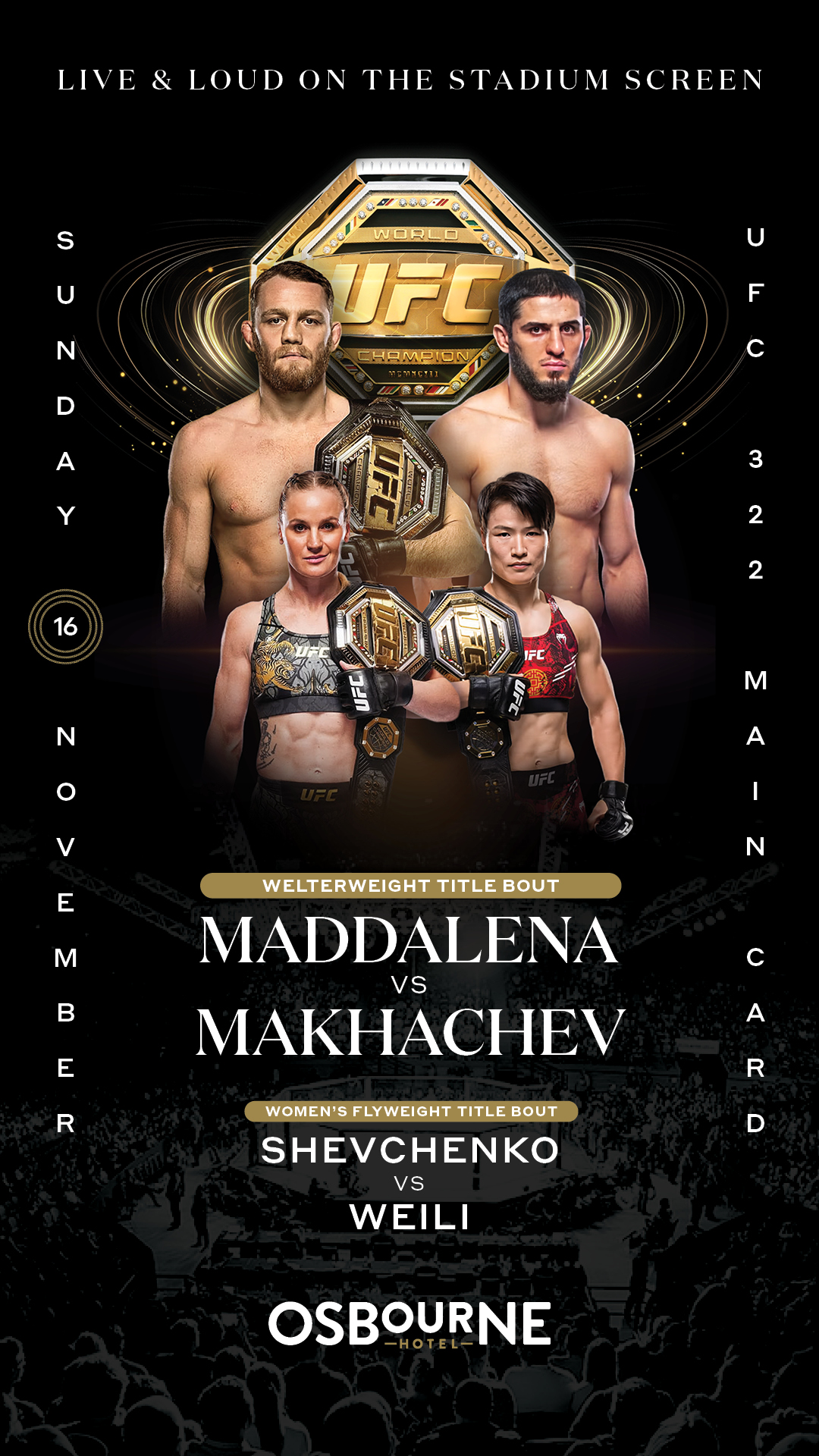 Welterweight champ Jack Della Maddalena defends his title as Islam Makhachev moves up a weight class in one of the most anticipated fights of the year. In the co-main, Valentina Shevchenko and Zhang Weili go head-to-head in a massive Women’s Flyweight title bout between two of the UFC’s fiercest champions.